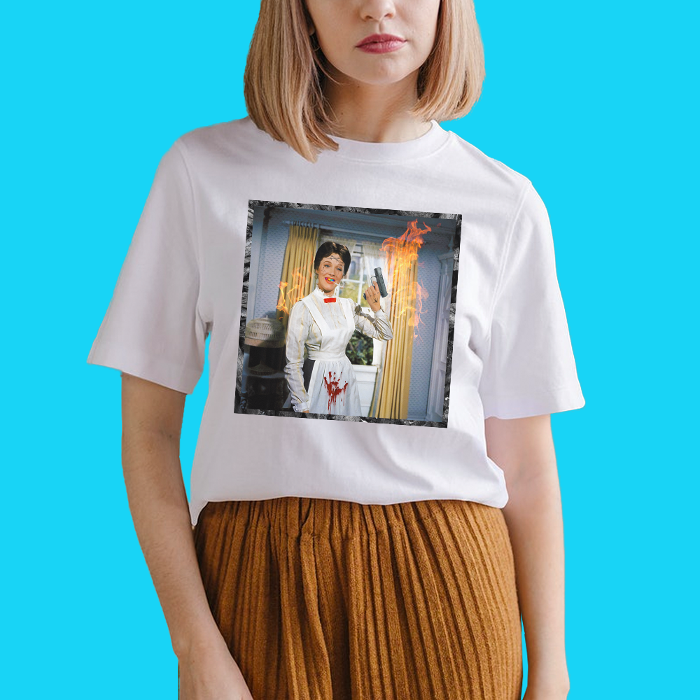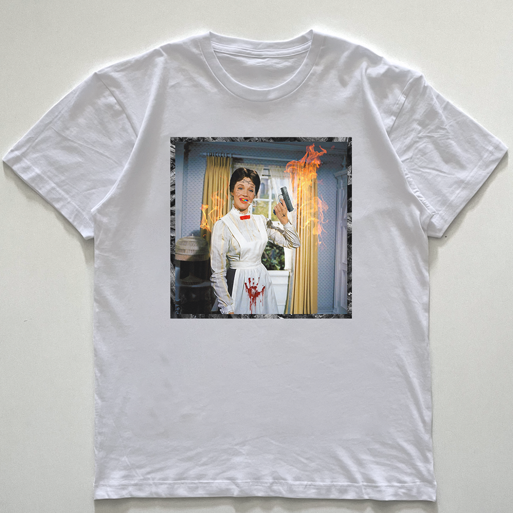 "In the most delightful waaaaaay!" Neck ribbing, side seamed crew neck featuring a 'Mary Poppins' graphic printed direct to garment on the front. Unisex sizing.