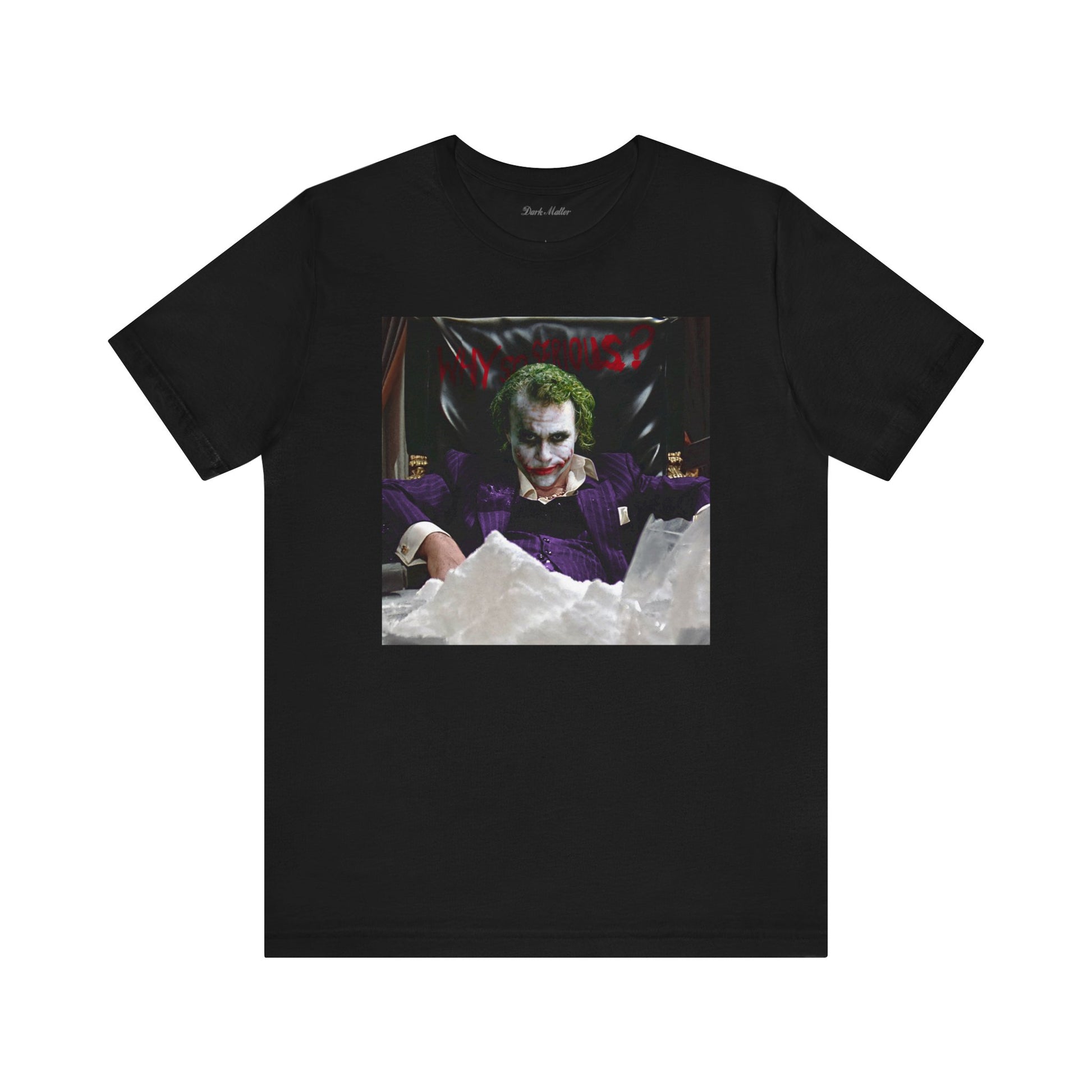 ”Say goodnight to the bad guy…” Neck ribbing, side seamed crew neck featuring a 'Joker' / 'Scarface' graphic printed direct to garment on the front. Unisex sizing.