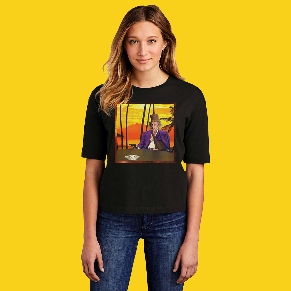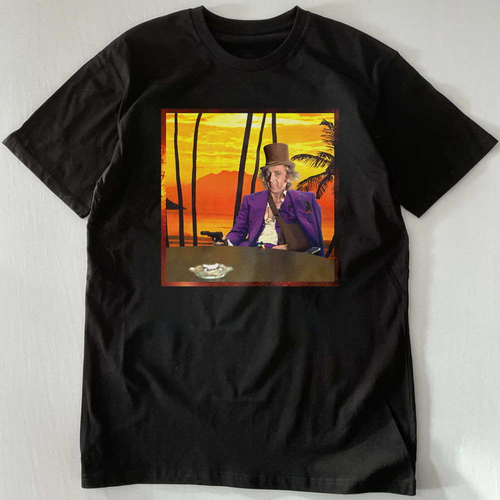 "All I have in this world is my gobstobbers and my word, and I don’t break ‘em for no one." Neck ribbing, side seamed crew neck featuring a 'Scarface' / 'Willy Wonka' graphic printed direct to garment on the front. Unisex sizing.